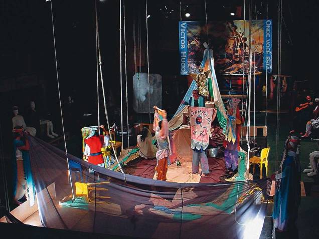envolvente e criativos elementos cenográficos feitos de tecido, a