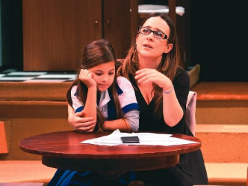 Aos 10 anos, a pequena rouba a cena no teatro como a filha da personagem de Gabriela Duarte