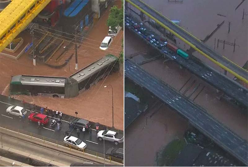No horário acima, a SPTrans informou que a operação dos ônibus está prejudicada em razão das fortes chuvas. O Expresso Tiradentes, na zona leste, teve sua operação paralisada. Os ônibus de oito linhas não estão circulando pela Marginal Tietê, abaixo da Ponte das Bandeiras (zona norte), e fazem desvios pela Rua Voluntários da Pátria, Rua Santa Eulália e Avenida Santos Dumont.