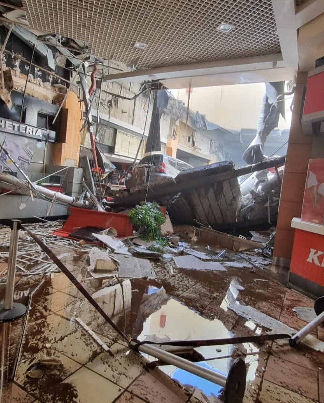 Ainda não há informações sobre feridos; queda atingiu a praça de alimentação