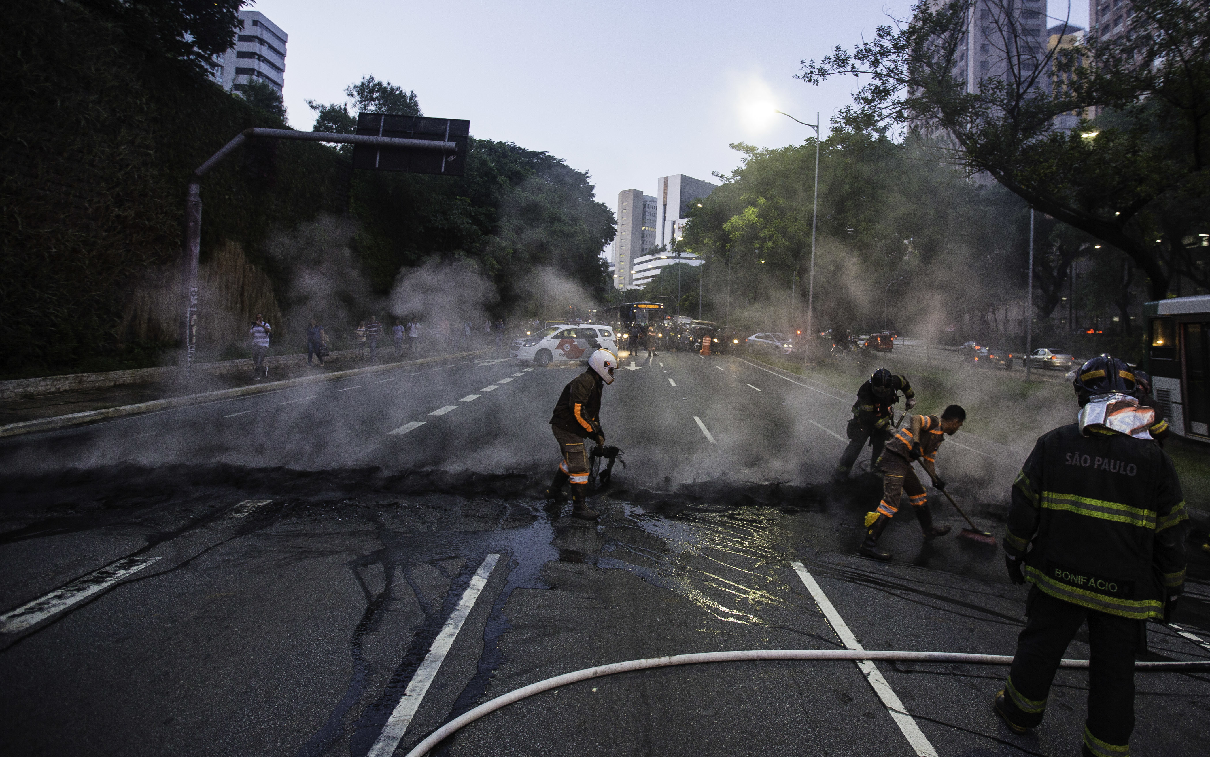 Por volta das 6h30, havia grande congestionamento na região. Ainda não se sabe qual grupo iniciou a barricada. Para não ficar no congestionamento, diversos motoristas optaram por passar pelo canteiro central que divide as duas pistas. Um ônibus chegou a atolar no local tentando fazer essa manobra. O fluxo de veículos foi liberado em torno das 7h, mas o acúmulo de veículos ainda persistia na região.