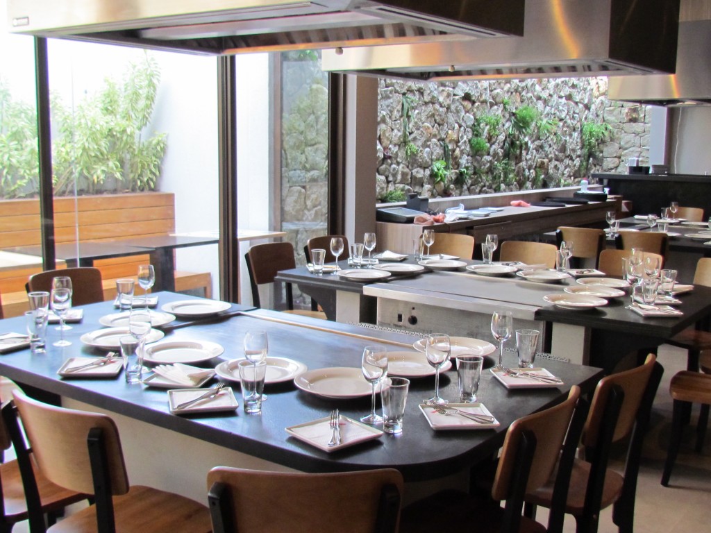 Salão com mesas montadas em torno das chapas: teppan yaki é a atração (Foto: divulgação)