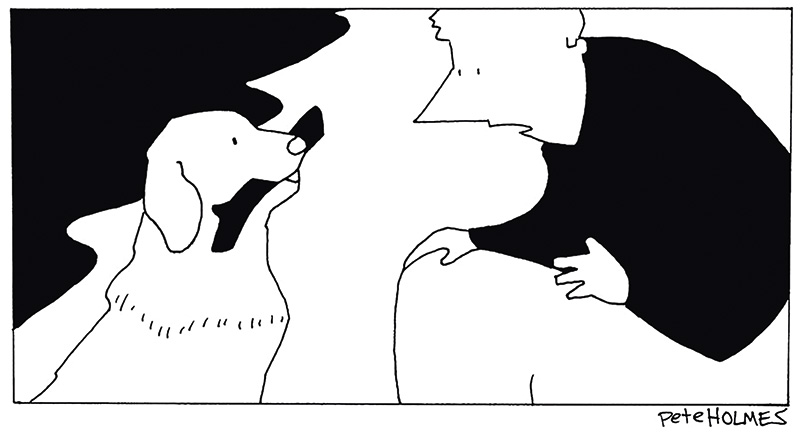 “Você não entende? Nunca foi pelo graveto. Eu o mandei até lá para encontrar a si mesmo.” (Crédito: Pete Holmes / The Cartoon Bank)