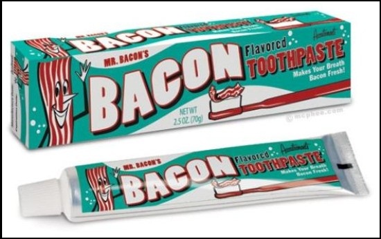 Há um consenso mundial que diz: bacon é bom. Bacon é muito bom. Baseadas nesse mantra, algumas mentes criativas ao redor do globo (lideradas pelos americanos, naturalmente) resolveram misturar o sabor dessas tirinhas suínas a outros ingredientes. Eis o resultado: 1. Aromatizador de veículos. Ou: cabelos ao bacon! 2. Pasta de dente. Imagina o bafo hálito depois […]