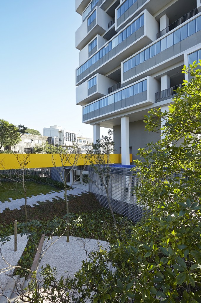 São seis metragens diferentes: 127, 154, 170, 200, 250 e duas coberturas de 446 metros quadrados cada uma. Cada uma delas conta com duas ou quatro vagas de garagem. Toda essa gama de opções de plantas é interessante não apenas para dar o aspecto de cubo mágico, mas também para garantir um mix interessante no perfil dos moradores. As unidades de menor metragem não têm dependência de empregada. Em vez disso, há na área comum uma lavanderia para uso de todos os condôminos, com máquina de lavar e de secar e tábuas de passar. Ao lado da lavanderia foi criada uma working station com três computadores. Ou seja, enquanto você espera a máquina lavar sua roupa, pode conferir os emails ou fazer uma reunião de trabalho. Pertinho dali, um charmoso salão de festas com uma vista panorâmica e mobiliário maravilhoso inspira outros tipos de reunião. A cozinha é separada do salão apenas por uma bancada, sem paredes. Para quem gosta de cozinhar com amigos, é um prato cheio. A piscina tem forma de raia e fica ao lado da sauna. Há ainda sala de fitness, parquinho e brinquedoteca, que completam as ofertas de lazer e área comum.