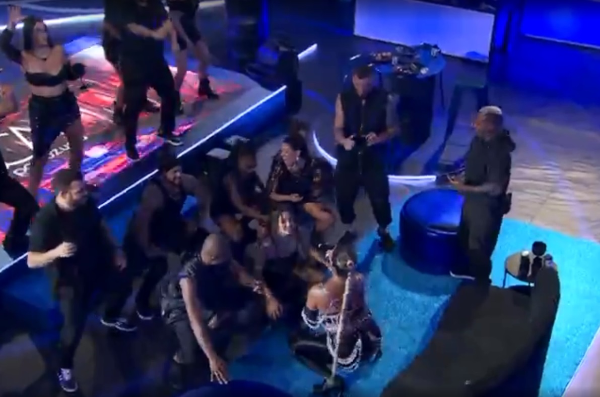 A funkeira desceu do palco para cantar um de seus hits na pista, cercada de participantes dançando. Em seguida, foi um pouco mais para trás, onde Rodriguinho estava sentado, dança de costas a ele. O ex-vocalista d’Os Travessos se levantou na hora e se afastou um pouco.