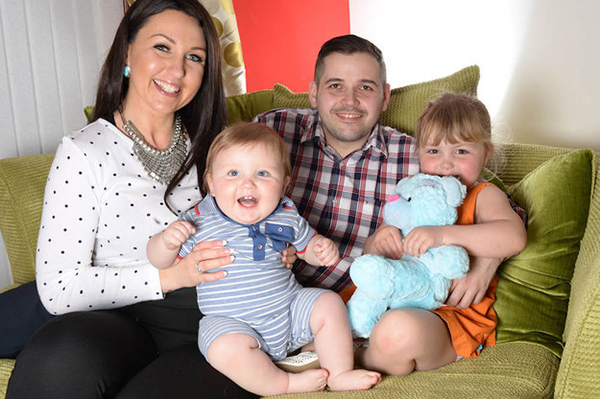 Jess Evans e Mike Houlston com os filhos Millie e Noah, irmão gêmeo de Teddy
