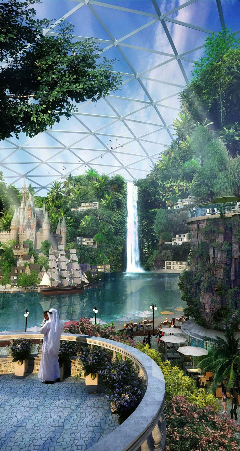 Os planos para o projeto são, obviamente, enormes. Ele contará não só com um shopping com climatização especial, mas também com o maior parque temático indoor do planeta e mais de cem hotéis e apartamentos. Quando estiver concluído, o “shopping” ocupara uma área de 48 milhões de metros quadrados.