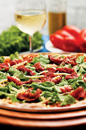 Alla diavola: uma das 36 versões do cardápio: peperoni, mussarela de búfala, cogumelos e pimentões