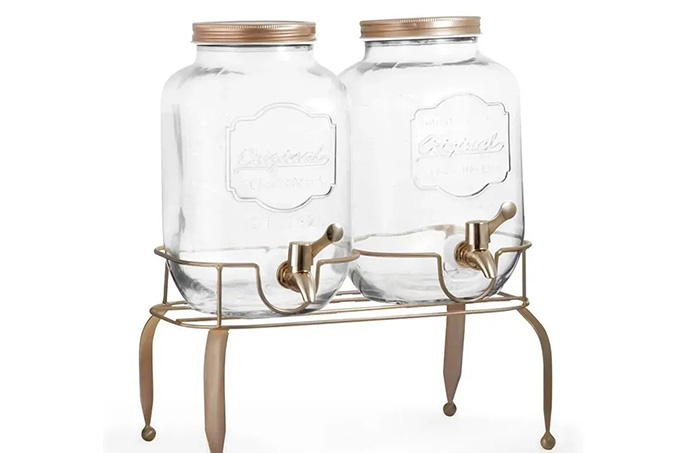 Essa dupla da Mimo Style traz recipientes de vidro com capacidade para 4 litros cada um, com tampa rosqueável, que facilita o reabastecimento de líquido e de gelo, e duas torneirinhas. É amparada por um suporte de metal e custa R$ 199,64 (o duo).