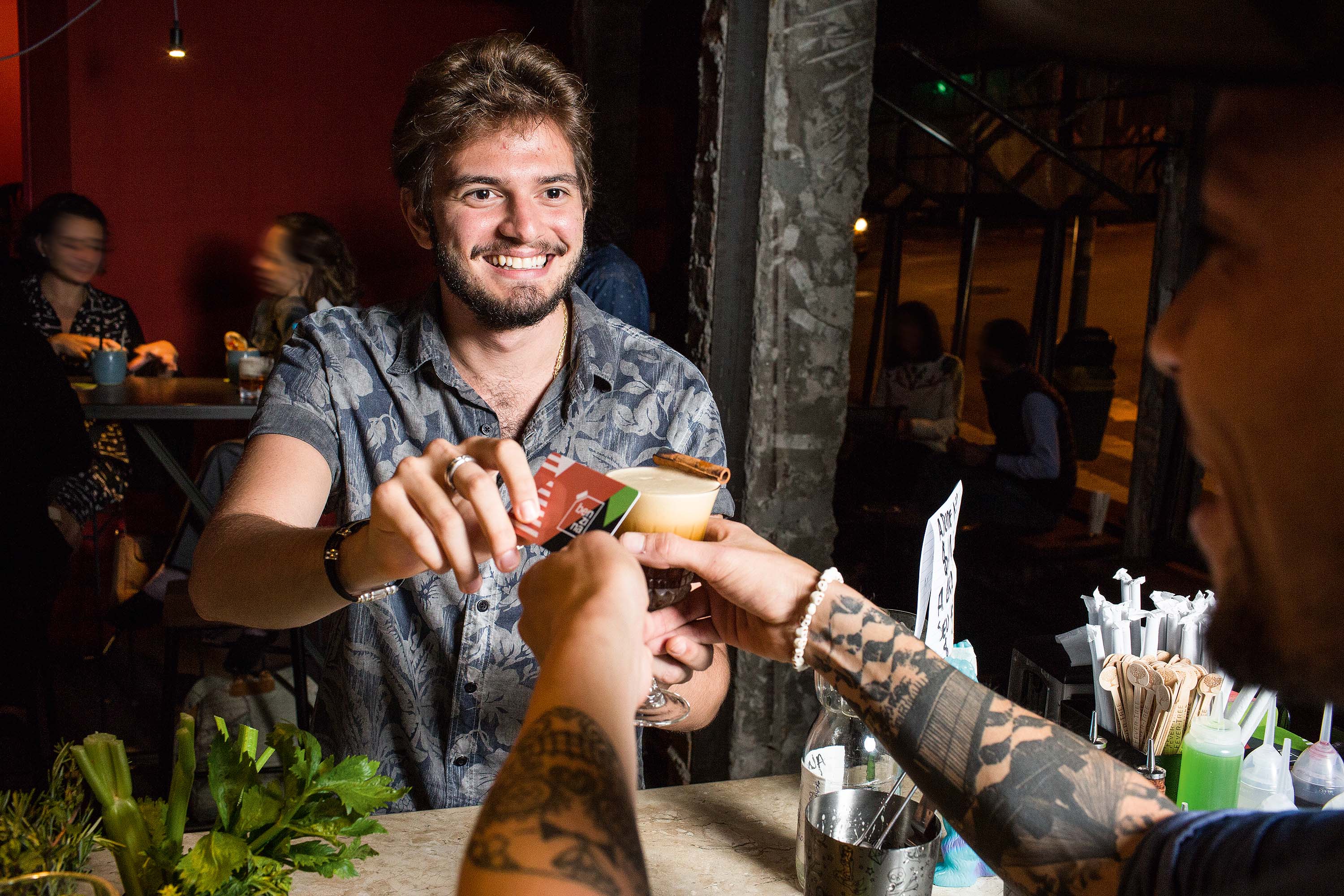 Basta adquiri-lo por 5 reais, enchê-lo com créditos no caixa ou num totem do bar e, a cada drinque comprado, ter descontado o valor da bebida escolhida. “Se sobrar saldo, dá para gastar depois”, comemora Pestana. O Benzina também oferece um sistema de pagamento idêntico ao do Uber, em que o freguês baixa um aplicativo e o gasto cai direto na fatura mensal do cartão de crédito.