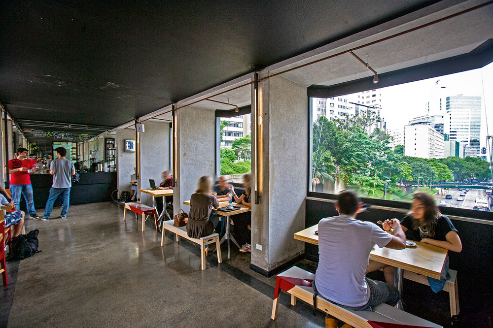Octavio Café. A matriz é espaçosa e tem mesas com maior número de lugares, as preferidas para reuniões. as mais concorridas são aquelas com tomada. Além da senha do wi-fi, os clientes pedem bebidas como o expresso com raspas de limão (R$ 9,00).