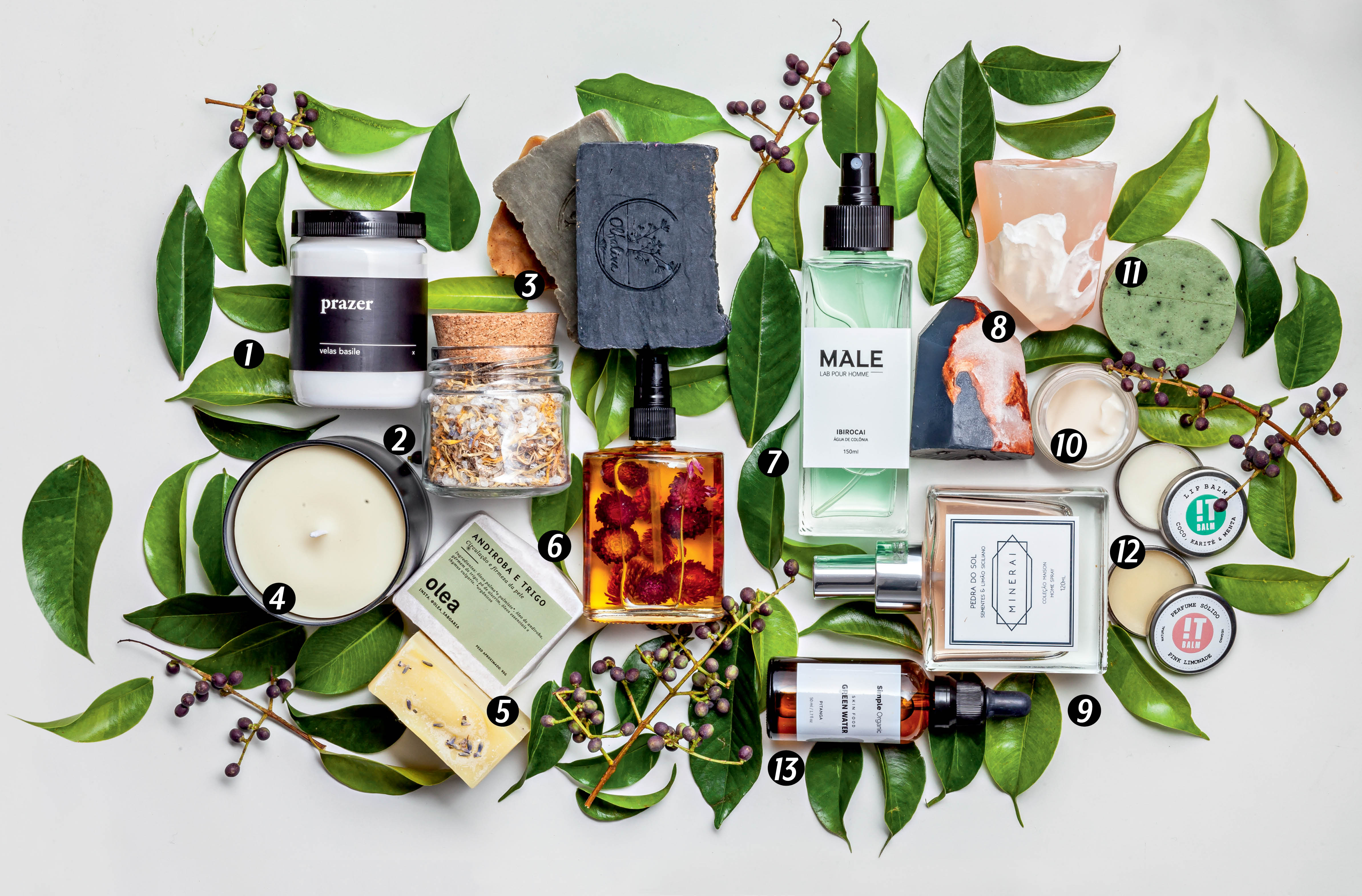 Itens de marcas que oferecem produtos de beleza e bem-estar de fabricação artesanal e matéria-prima natural:
