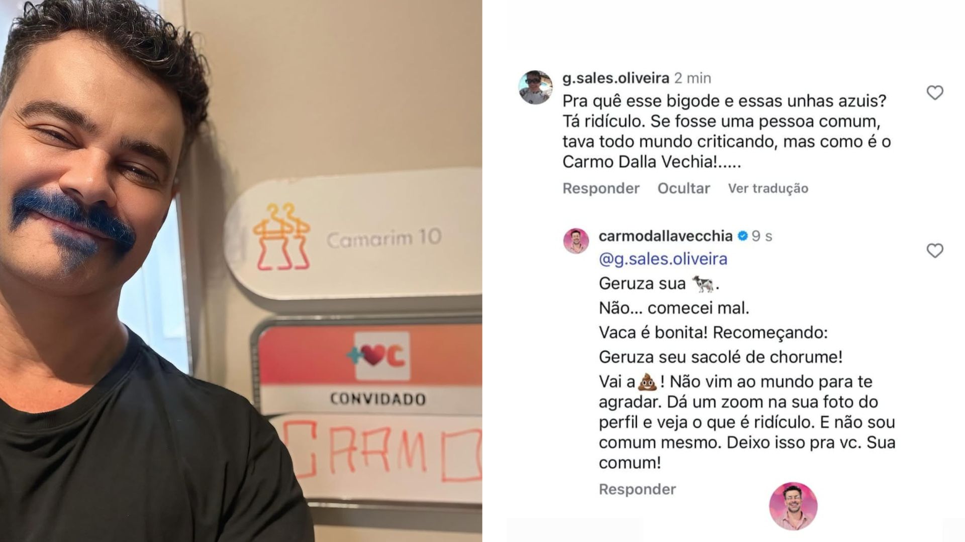 Internauta criticou novo visual do ator, que pintou o bigode e as unhas de azul